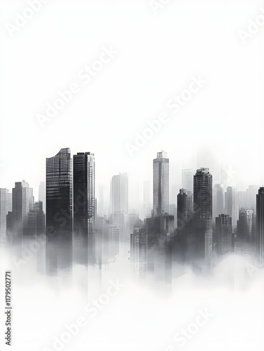 A minimalist sketch of a city skyline with clean, sharp lines in gray.