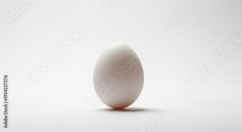 A Minimalist Studio Photograph of a Single White Egg with Soft Lighting and Clean Background in a Modern Product Style