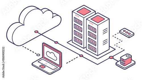 server, network, connection, cyberspace, hosting, database, laptop, technology, digital, information, isometric, line art, minimalist, vector, illustration, connectivity, node, data transfer, storage, virtual, online, computing, hardware, software, infrastructure, system, communication, workstation, enterprise, tech, business, modern, monochrome, flow, link, processing, automation, information technology, information technology, remote, wireless, global, icon, graphic design
