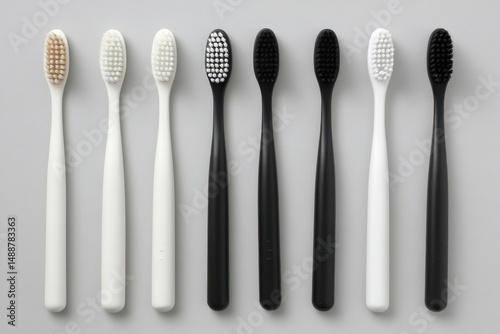 toothbrush, dental, hygiene, oral, care, clean, white, black, health, teeth, bathroom, daily, routine, bristle, plastic, personal, background, modern, simple, minimalist, design, product, health care, wellness, mouth, equipment, medicals, tool, beauty, elegance, style, domestic, object, closeup, nobody, freshness, dental hygiene, teeth, lifestyle, arrangement, row