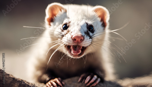 A mischievous ferret caught in a playful act, looking utterly amused. Use this image to bring joy and laughter to your audience