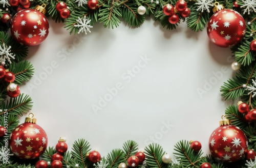 christmas, decoration, copy space, holiday, layout, postcard, present, new year, winter, border, frame, greeting, white, card, composition, design, template, celebration, empty, festive, new, seasonal, space, banner, center, creative, merry, frosted, vignette, event, happy, gift, concept, element, clean, christmas background, realistic, tree branch, snowflake, luxury, needle, pine, year, christmas, illustration
