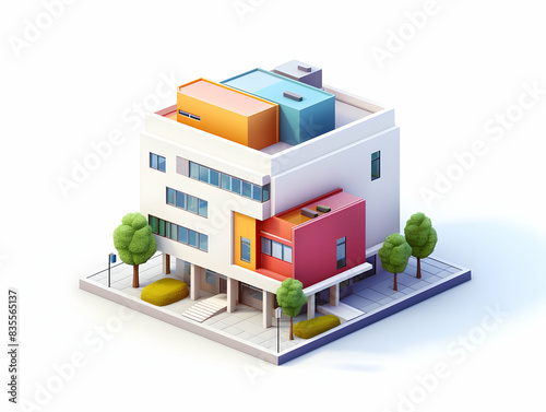 A model of 3d real estate house building, Conceptual flat and building on urban area, real estate housing concept
