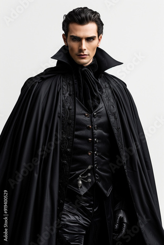 model, dracula, costume, halloween, white, background, isolated, vampire, cape, fang, skittish, horror, gothic, creepy, blood, undead, cloak, make-up, scarey, night, evil, dark, sinister, classic, mysterious, fang, male, fashion, attire, character, disguise, monster, supernatural, bat, charming, pale, bite, haunting, ghoulish, masquerade, theatrical, chilling, fiend, villain, enigmatic, ghoul, beauty, studio, make-up