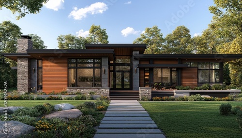 modern, three-dimensional, rendering, house, minimalist, architecture, clean, line, roomy, experiencing, home, building, exterior, sky, garden, construction, lawn, window, design, family, residential, residence, front, estate, roof, door, porch, villa, property, travel, bungalow, grass