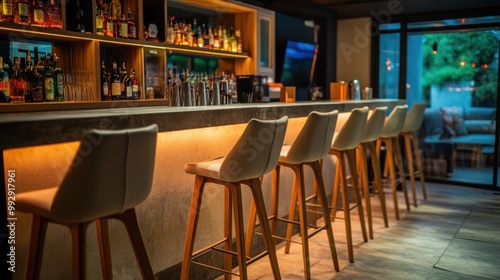 bar, stool, drink, shelf, lighting, modern, interior, design, counter, seating, ambience, cocktail, spirit, wood, glasses, decor, hospitality, social, relaxation, evening, nightlife, urban, style, furniture, layout, warmth, beverage, lounge, atmosphere, chic, contemporary, service, elegance, comfort, gathering, friends, leisure, entertainment, space, inviting, trendy, cosy, city, retreat