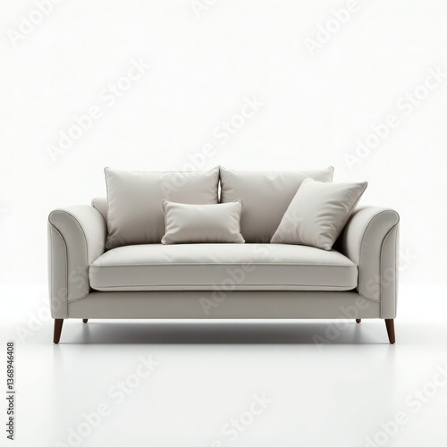 A modern beige sofa with soft cushions, perfect for a cozy living space.