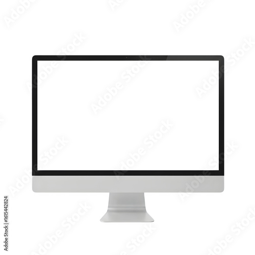 A modern computer monitor with a blank white screen isolated on white or transparent background. PNG