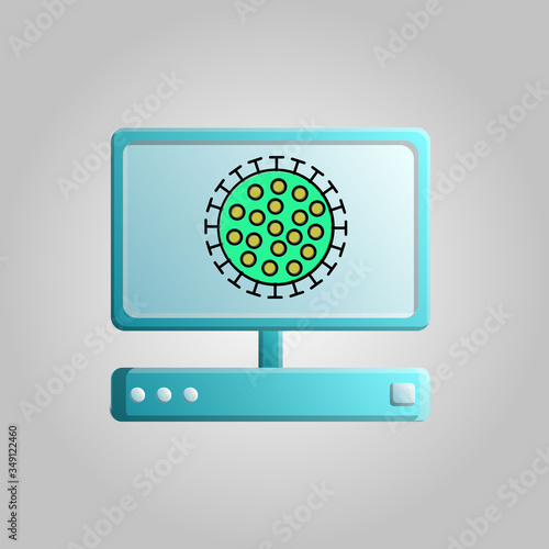 A modern digital computer with a monitor for online medicine to work on a cure for a dangerous deadly epidemic of the coronavirus Covid-19 disease virus pandemic. Vector illustration
