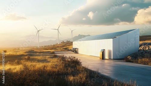 facility, wind, energy, landscape, building, technology, environment, renewable, nature, sustainable, power, agriculture, horizon, sky, grass, road, mountain, cloud, solar, clean, resource, innovation, ecology, rural, infrastructure, design, future, industry, climate, conservation, efficiency, environmentally friendly, production, equipment, maintenance, transport, machinery, development, scenic, green, usage, location, storage, utility