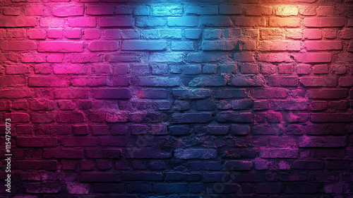 A modern futuristic neon glow illuminates an old grunge brick wall, creating a striking contrast between new technology and urban decay, symbolizing chaos and transformation in a city environment