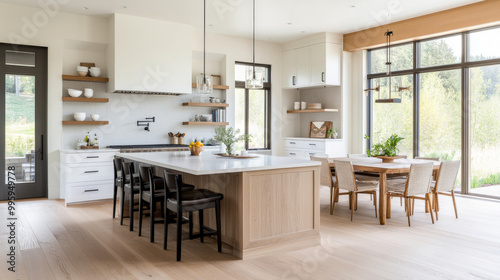 kitchen, modern, interior, design, roomy, island, cabinetry, natural, light, dining, contemporary, minimalist, open, space, home, furniture, decor, wood, bright, elegant, stylish, cosy, plant, table, chair, shelf, appliance, white, neutral, relaxing, inviting, airy, layout, family, cooking, area, sunlight, greenery, comfortable, aesthetic, wooden, colours, functional, warm, atmosphere, material, concept