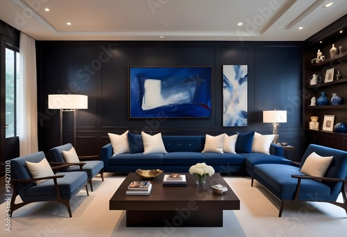 design, modern, sofa, interior, blue, home, floor, furniture, apartment, wall, decoration, house, living room, carpet, room, lounge, white, architecture, chair, contemporary, decor, wood, lamp, living, armchair, glasses, couch, pillow, style, curtain, template, book, indoor, coffee table, stylish, wallpaper, plaid, cosy, open space, posh, comfortable, concept, blanket, home decor, inside, inspiration