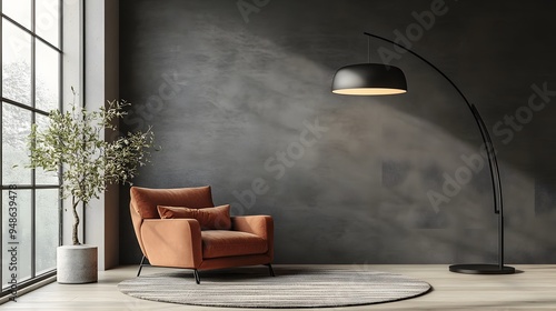 modern, living room, minimalist, monochromatic, colours, cosy, rug, single, statement, lamp, home decor, interior design, contemporary, simple, elegant, neutral, black, white, grey, beige, brown, soft, comfortable, inviting, relaxing, peaceful, serene