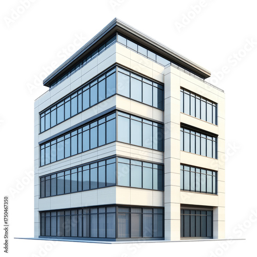 a modern office building, isolated on a white background, with a simple design, 3D rendering, transparent, alpha background png