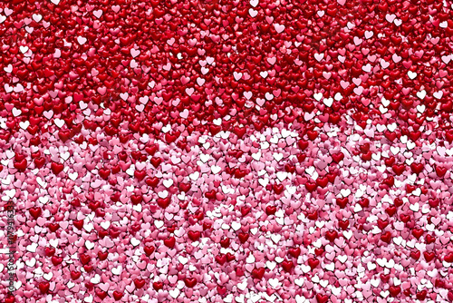 A modern print featuring red and pink love hearts in a contemporary design, perfect for trendy decor, greeting cards, or digital backgrounds, flat art