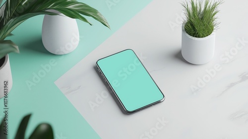 smartphone, technology, mint, green, decor, isolation, simplicity, visual, harmony, minimal, innovation, trendy, stylish, photo, contemporary, screen, aesthetic, elegant, mobile, plant, surface, office, contraption, workspace, device, communication, tabletop, minimalism, home, pot, arrangement, modern, art, digital, clean, lifestyle, design, accessory, beauty, colours, decoration, nature, bright, environment, plant, vibe, background, fresh