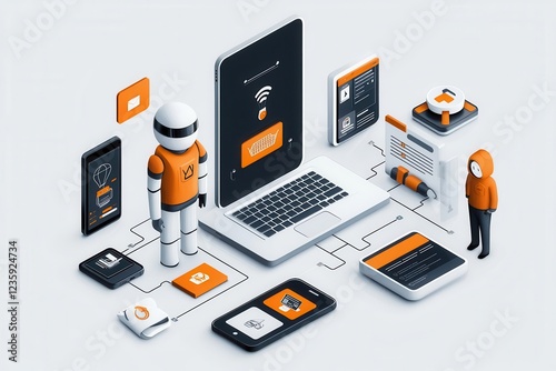 workspace, robot, technology, modern, innovative, device, laptop, smartphone, cyberspace, design, setup, automation, application, virtual, computer, equipment, interface, environment, solution, flexibility, remote, furniture, improvement, efficiency, project, education, hybrid, ergonomic, architecture, connection
