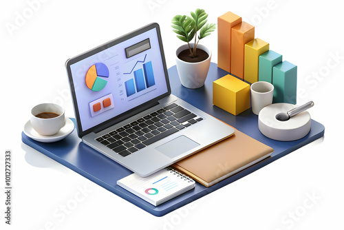 A Modern Workspace Setup with Laptop, Financial Documents, and Coffee Emphasizing Productivity and Efficiency for Business Advertisements