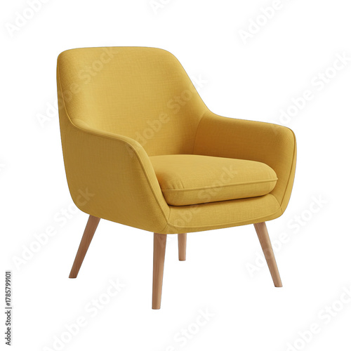 A Modern Yellow Textured Armchair with Tapered Wooden Legs Isolated on a Transparent Background Showcasing Contemporary Furniture Design
