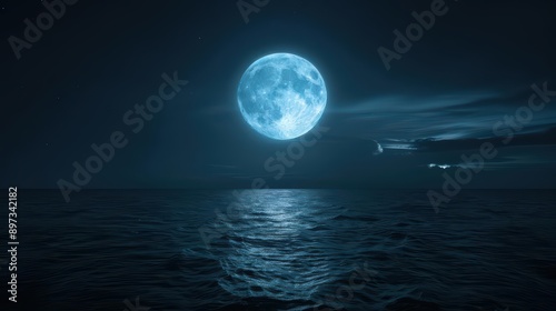 A moonlit night perfect for wallpaper landscape fantasy, featuring a luminous moon casting a soft glow over a tranquil scene, banner, with copy space