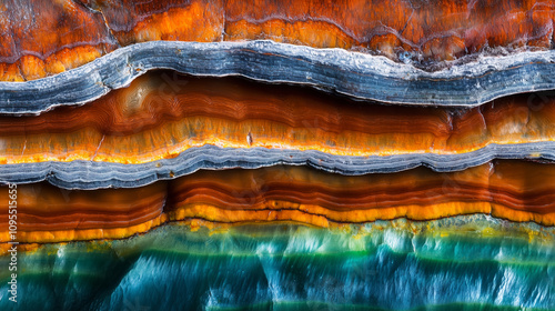 A mosaic of vibrant minerals and textures, layered in rock formations that capture the dynamic beauty and timeless artistry of Earth's geological story