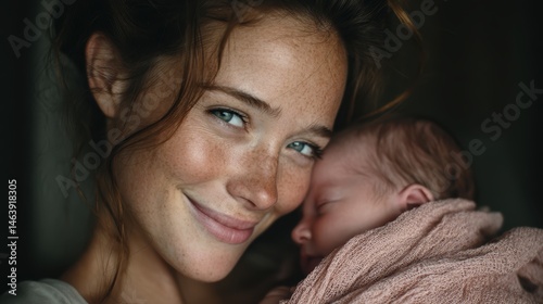 mother, holding, newborn, baby, arm, both, smiling, sharing, quiet, tender, moment, connection