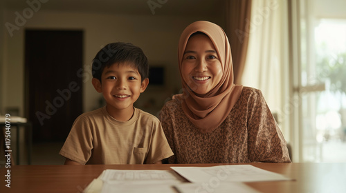mother, son, study, table, minimalist, room, soft, lighting, clean, design, warm, atmosphere, modern, furniture, bright, cosy, laugh, talking, learning, home, family, bonding, islamic, simple, interior, elegant, decor, peaceful, happy, education, desk, serene, tidy, children, parenting, lifestyle, teaching, smiling, connection, love, sharpened, culture, harmony, calm, natural
