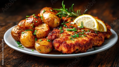 chicken, fried, meal, comfort, crispy, culinary, potato, lemon, family, delicious, epicure, food, favor, hearty, warmth, satisfaction, appetising, tradition, enjoyment, feast, dining, rustic, gastronomy, visual, plate, receipe, seasoning, herb, indulgent, cookery, aesthetic, dinner, texture, savoury, cooking, fun, taste, balance, delightful, artistry, presentation
