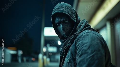 night, urban, city, street, mysterious, dark, hooded, masked, figure, man, shadow, alone, detective, crime, criminal, vigilante, anonymous, suspicious, fear, danger, hidden, identity, secret, evil, creepy, scarey, gloomy, silhouette, street light, building, wall, corner, sidewalk, pose, expression, intense, enigmatic, surveillance, concealed, watchful, unseen, shadowy, camouflage, protection, disguise