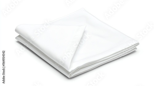 A neatly folded white napkin on a white background, perfect for elegant dining settings.