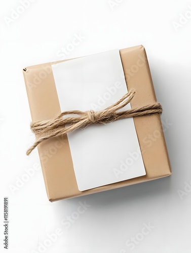 A neatly wrapped gift box with a blank tag, ready for presentation or giving.
