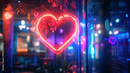 love, nubes, neon, light, glow, romantic, romance, valentine, february, red, pink, blue, window, glasses, blurred, night, urban, city, outside, eatery, bar, decor, decoration, signs, electric, bright, vibrant, modern, abstract, background, atmosphere, detail, shape, outline, glowing, energy, design, style, artistic, illumination, scene, beautiful, soft, colours, darkness, festive
