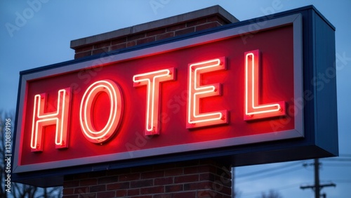 neon, signs, hotel, red, glowing, brick, background, night, light, building, accommodation, lodging, travel, stay, motel, exterior, signage, bright, glow, urban, architecture, hospitality, tour tourism, destination, street, landmark, commercial, business, city, electric, illuminated, retro, vintage, classic, bold, vibrant, eye-catching, advertisement, structure, design, modern, contemporary, inviting, welcoming, recognizable