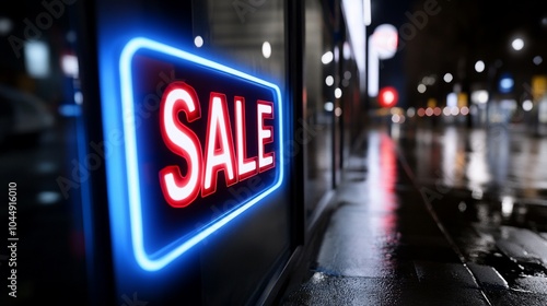sale, retail, store, window, signs, neon, night, city, street, shop, discount, offer, advertising, marketing, promotion, business, client, consumer, shopping, purchase, buy, deal, bargain, price, value, save, money, finance, economy, commerce, trade, industry, urban, modern, contemporary, lighting, light, colours, blue, red, dark, background, texture, abstract, graphic, design, illustration