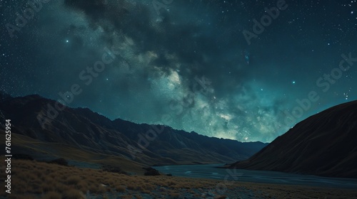A never-ending starry sky over an empty mountain range AI generated illustration