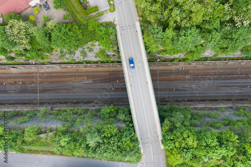 A new bridge across a small river. Summer time. Small reinforced concrete bridge after reconstruction. New asphalt.