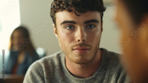 A new member joins the support group for the first time looking relieved and hopeful to have found a safe space to talk about his mental health.