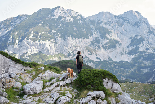 dog, nova, scotia, duck, tolling, retriever, hiker, mountain, trail, peak, rocky, alpine, scenery, exploration, adventure, nature, travel, hiking, trekking, wilderness, scenic, majestic, summit, climbing, serene, panoramic