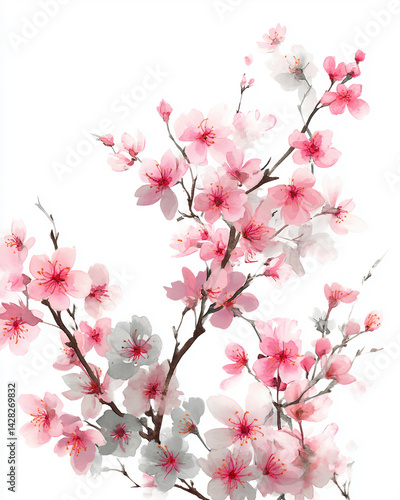 painting, pink, flower, white, stem, detailed, lot, blossom, calming, peaceful, mood, colours, spring, tree, japanese, cherry, beauty, nature, tree branch, season, plant, floral, japan, sakura, illustration, art, garden, blooming, background, decoration, design, chinese, traditional, oriental, watercolor, china, leaf, growth, card, pattern, flora, asia, bud, culture