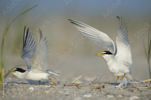 bird, action, beach, behaviour, black, brown, courtship, grass, grey, green, low angle, mating, sand, white, wing, yellow