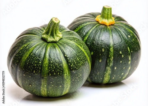 A Pair of Realistic Round Cucurbita Pepo: Eight Ball Squash and Zucchini Isolated on a Clean White Background for Fresh Produce Imagery