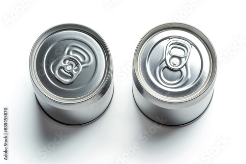 A pair of soft drinks sitting on a clean surface, possibly used for photography or decoration