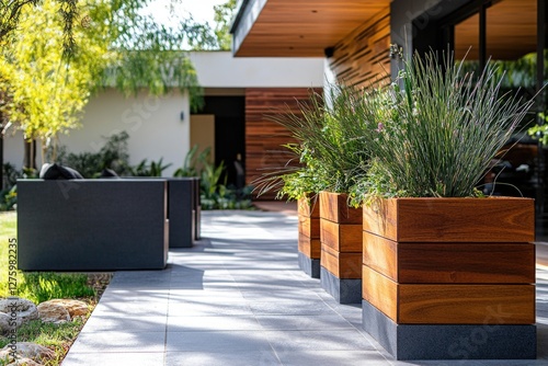 wooden, sidewalk, outdoors, gardening, home, decor, exterior, landscaping, pot, container, flowerpot, greenery, foliage, yard