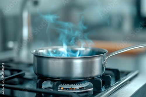 pan, blue, smoke, coming, sitting, stove, burner, metal, cook, kitchen, gas, food, result, fire, steel, hot, flames, heat, domestic, home, propane, background, black, appliance, natural, hob, burn, light, flammable, energy, closeup, power, preparation, fuel, pot, danger, dark, saucepan, equipment, butan, cooker, warm, oven, glowing, ring, utensil, safety, stainless, chef