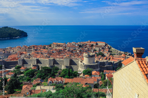 dubrovnik, croatia, panoramic, view, coastal, scenery, historic, wall, ancient, city, red, roof, clear, sky, mediterranean, travel, architecture, tour tourism, summer, heritage, landscape, blue, sea, castle, city landscape, sightseeing, beach, vacation, history, landmark, adventure, culture, old, town, nature, attraction, scenic, view, earth, unesco, hiking, exploration, tropical, vibrant, colours, beautiful