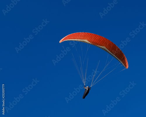 paragliding, parachute, sky, sport, paraglider, extreme, fly, flying, blue, adventure, gliding, air, freedom, glider, activity, skydiving, action, fun, flight, wind, people, wing, high, sport, orange, colours