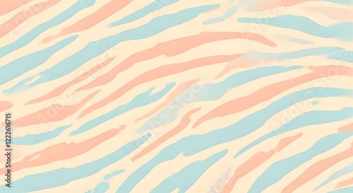 A pastel tiger stripe texture featuring cream, coral, and pale blue , AI Generated