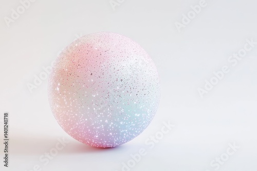 A pastel-colored, glitter-covered sphere rests on a white background, evoking a dreamy, ethereal feel.