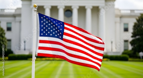 A Patriotic View of the American Flag Fluttering in Front of the White House
